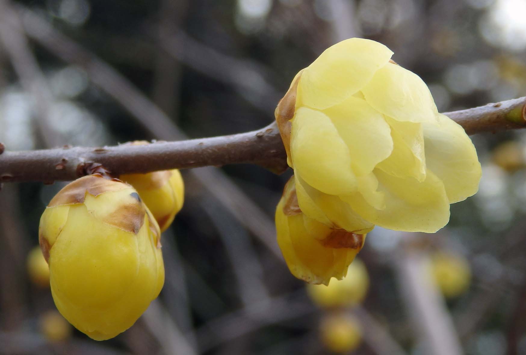 蝋梅(ロウバイ) なかなか満開にならず、例年いつ頃だったかと思う一月。 まだですか?と、中を覗き込む。 写真をクリックまたはタップすると、大きなサイズでご覧いただけます。 背景の白い玉ぼけは、白梅。満開が待ち遠しい。ロウバイ科の花。 撮影場所:名城公園フラワープラザ 投稿ナビゲーション ラナンキュラス菜の花(ナノハナ)