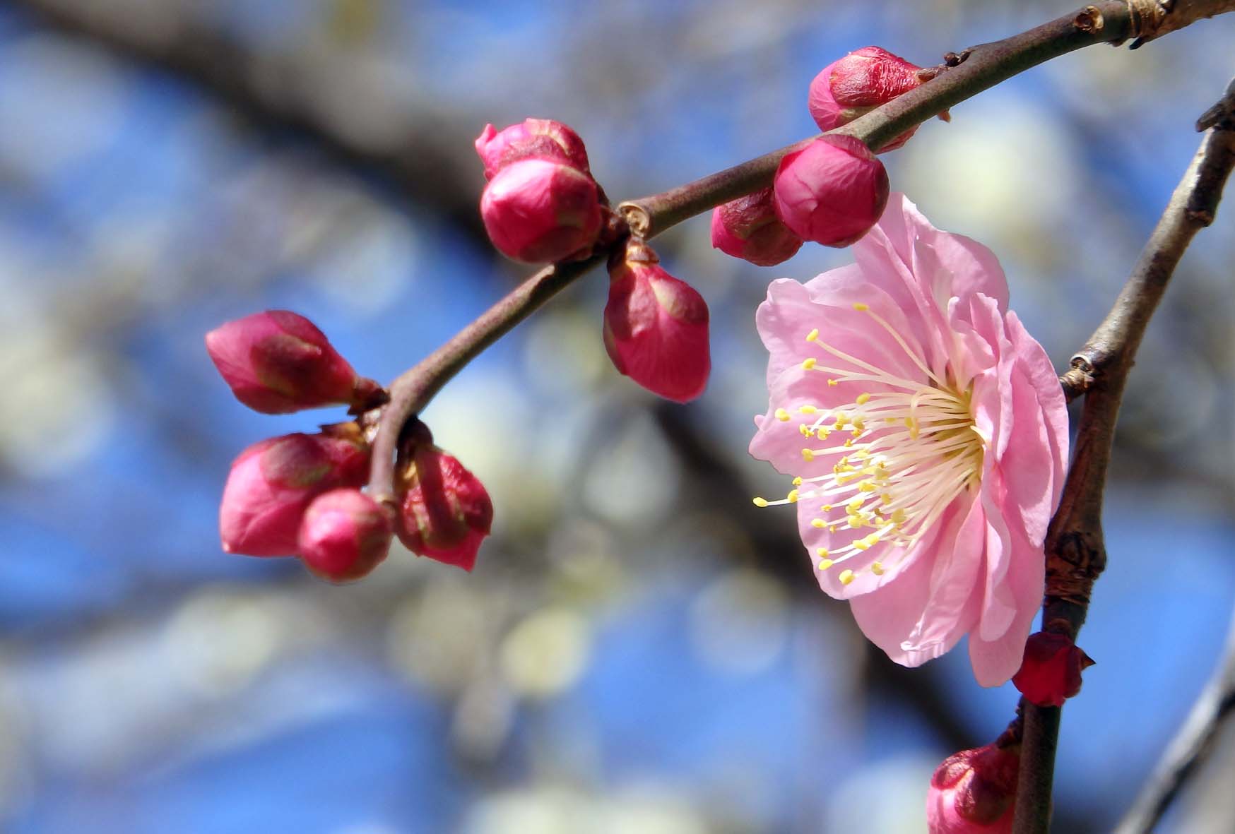 紅梅(コウバイ) 屋外の梅、その2。名札がみあたらなかったので、紅梅(コウバイ)とした。 少し寄ってみた。 覗き込んでみた。 ほころんだ姿も、蕾も丸い。 満開にはまだ少し。 写真をクリックまたはタップすると、大きなサイズでご覧いただけます。 ウメ科の花。 撮影場所:今池公園 投稿ナビゲーション 白梅(ハクバイ)紅梅(コウバイ)