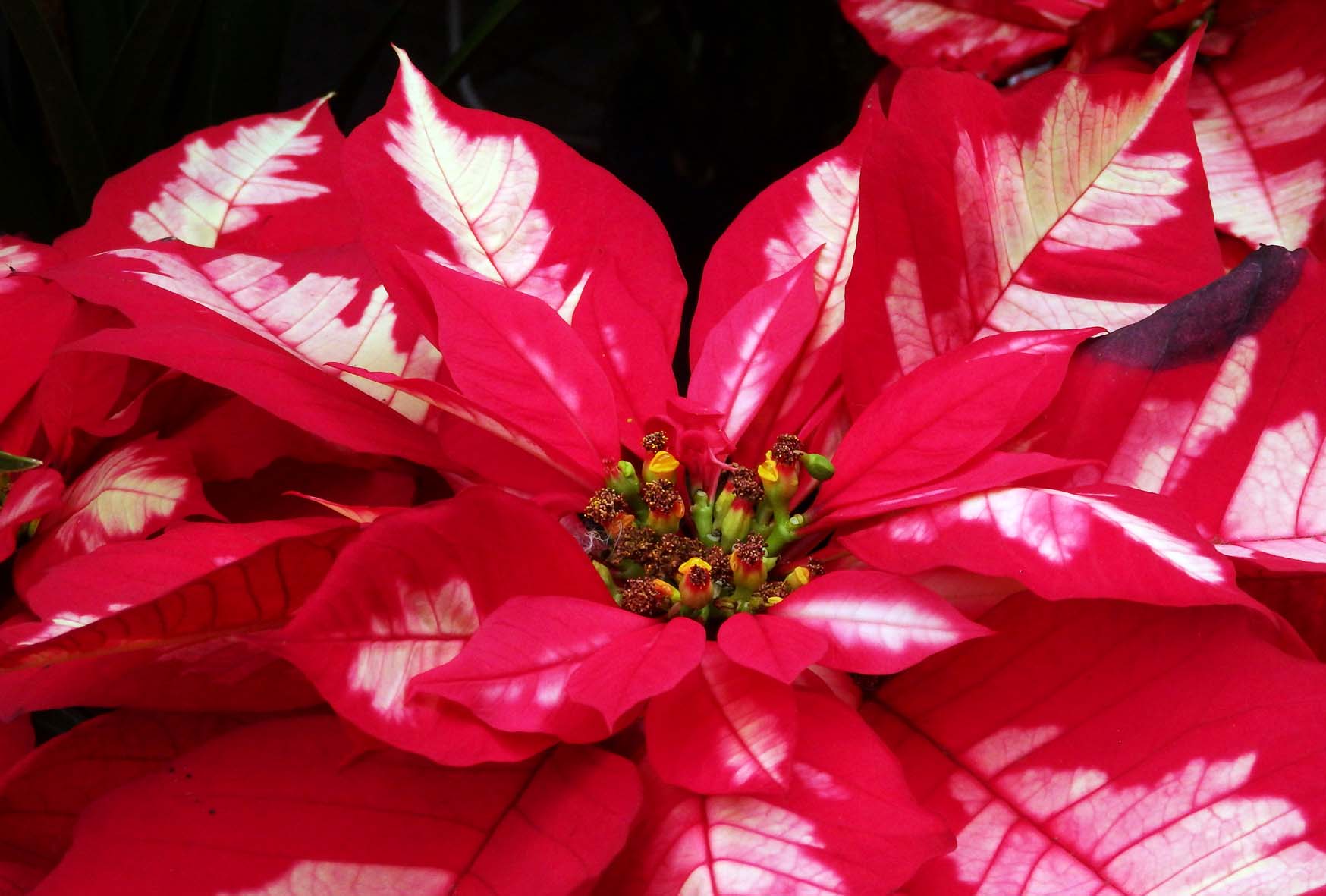 赤いポインセチア。花は地味だが、葉は華やか。赤一色がシックに見える。トウダイグサ科の花。